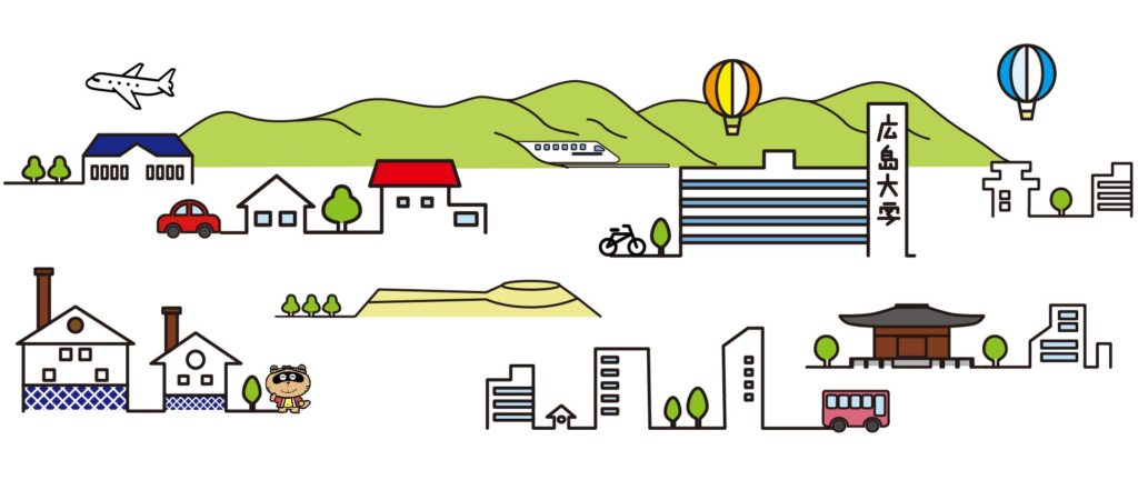 また、広島空港へのアクセスも良好で、東広島市の中心部から広島空 港までは車で約20分程度で到着し、県外や国外へのアクセスも良好です。道路では山陽自動車道、東広島呉自動車道、国道2号・185号など整備されています。